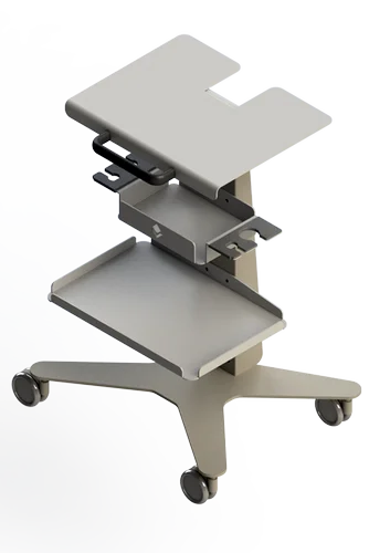 Carrito auxiliar en acero esmaltado blanco con tres estantes reforzados. Ideal para mover equipos o consumibles con total comodidad dentro de la cabina.